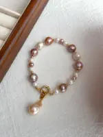 Ta modułowa bransoletka to wyjątkowe połączenie naturalnych pereł w czterech różnych stylach, które razem tworzą harmonijną, wielowymiarową kompozycję. Duże, białe perły o pomarszczonej fakturze kontrastują z okrągłymi, barokowymi perłami w odcieniach fioletu. Całość uzupełniają mniejsze, gładkie perły o pięknym połysku, które dodają bransoletce subtelnej elegancji. Zawieszka z odczepianą barokową perłą stanowi dodatkowy, uniwersalny akcent, który pozwala na personalizację bransoletki. Złote wykończenie w postaci kulek 14K gold-filled oraz zapięcie ze srebra 925, pozłacane 24K złotem, podkreślają luksusowy charakter tego modelu. Ta bransoletka jest idealnym wyborem zarówno na co dzień, jak i na specjalne okazje.