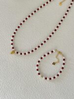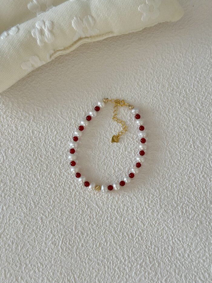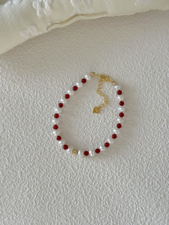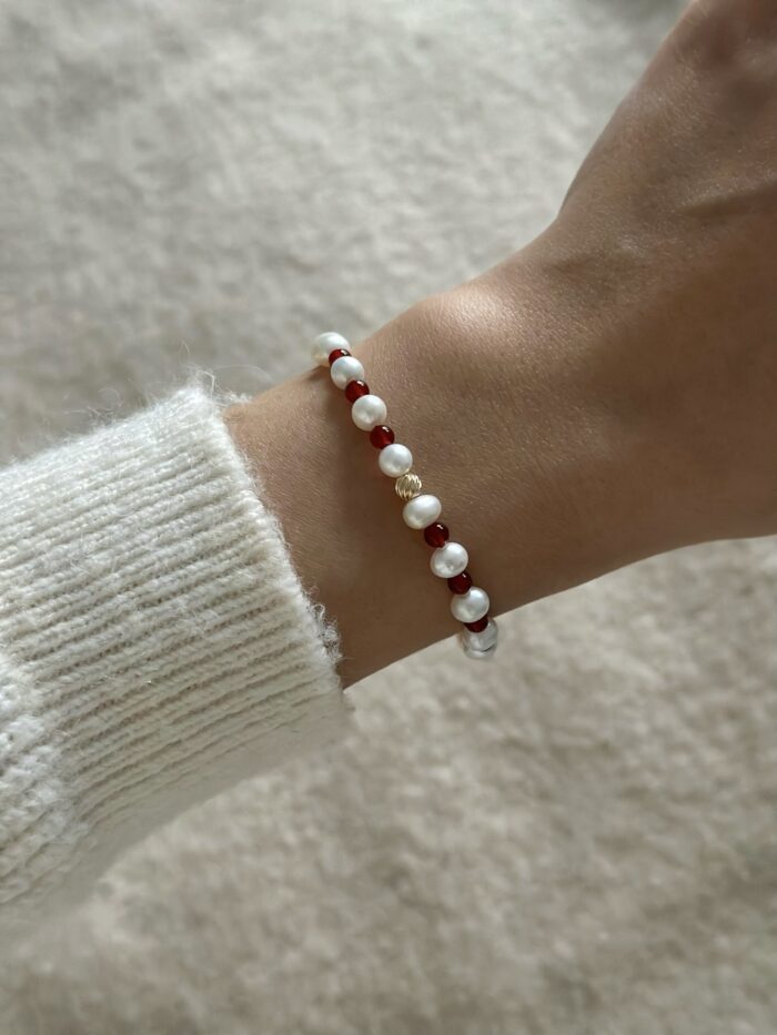 Urocza i bardzo delikatna bransoletka, która łączy w sobie intensywną czerwień drobnych koralików z agatu akcentami białych perełek. To idealna propozycja dla osób ceniących subtelne dodatki.