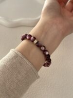 Bransoletka wykonana jest na elastycznej żyłce jubilerskiej, dzięki czemu wygodnie dopasowuje się do nadgarstka i jest komfortowa w noszeniu. Lepidolit posiada naturalną, delikatną strukturę, dlatego biżuterię warto przechowywać i użytkować z odpowiednią ostrożnością