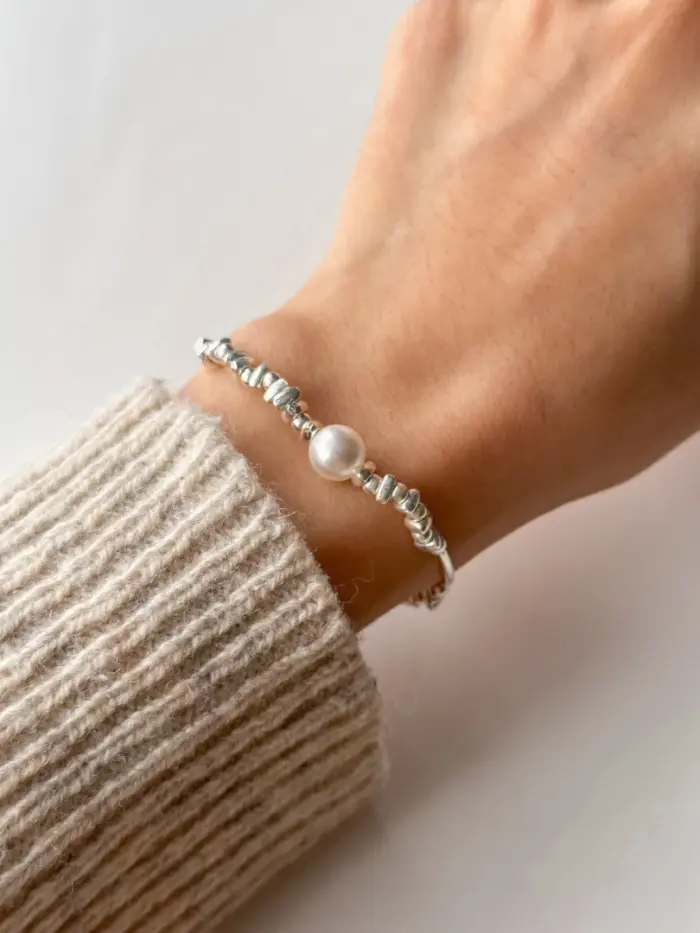 Bransoletka ze srebra z perłą to wyjątkowy dodatek, który emanuje subtelnością i elegancją. Delikatne połączenie kawałków srebra doskonale komponują się z piękną perłą, tworząc harmonijną całość. To biżuteria, która doskonale pasuje do różnych stylizacji, dodając im wyjątkowego uroku. Ten model na pewno doda elegancji Twojemu nadgarstkowi i przyciągnie uwagę swoim pięknem.