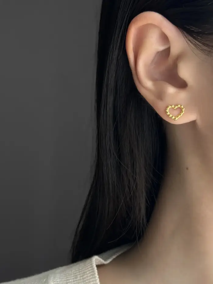Rozświetl swój styl dzięki tym uroczym kolczykom w kształcie serc. Ich minimalistyczny design łączy w sobie romantyzm kształtu serca z odrobiną zabawy i oryginalnością. Wykonane ze srebra pozłacanego 18K złotem, te urocze kolczyki podkreślą Twoją delikatność i wyjątkowy gust. Idealne jako prezent dla ukochanej osoby lub dla siebie samej, aby wyrazić miłość i docenić piękno w codziennych drobiazgach.