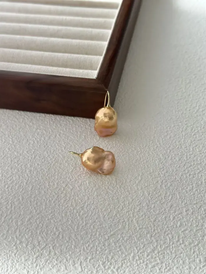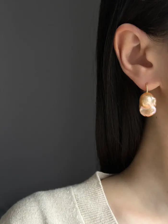 Eleganckie i pełne charakteru kolczyki z brzoskwiniową perłą barokową to doskonały wybór dla kobiet ceniących subtelność i naturalne piękno. Każda perła ma unikatowy, nieregularny kształt oraz delikatny, naturalny, i rzadko spotykany brzoskwiniowy odcień – dzięki temu każda para kolczyków jest jeszcze bardziej wyjątkowa. Perły zostały starannie dobrane pod względem kształtu, koloru i blasku, co sprawia, że z łatwością można dostrzec ich bardzo wysoką jakość. Ich ciepły ton idealnie współgra z haczykami ze srebra próby 925, pokrytego 18-karatowym złotem, tworząc subtelne i uniwersalne połączenie.