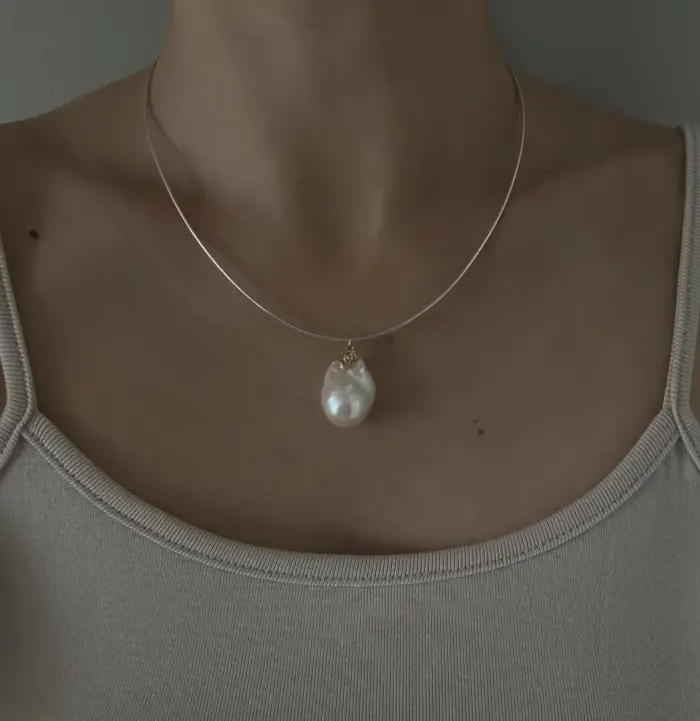 Wzbogać swoją kolekcję biżuterii o nasz nowoczesny naszyjnik z perłą barokową, zawieszoną na naszyjniku o charakterze rurki. Ta wyjątkowa kompozycja łączy w sobie surową elegancję i niepowtarzalny charakter naturalnej perły barokowej. Całości charakteru dodaje moneta zawieszona razem z perłą. Ten designerski naszyjnik to idealny model dla kobiet, które szukają unikalnego dodatku, podkreślającego ich indywidualny styl. Ten naszyjnik doskonale sprawdzi się zarówno na co dzień, jak i na specjalne okazje.