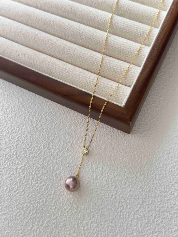 Naszyjnik posiada regulowaną długość – wystarczy delikatnie pociągnąć za końcówki, aby idealnie dopasować go do dekoltu. Dzięki temu z łatwością dopasujesz go zarówno do codziennych stylizacji, jak i wieczorowych kreacji.