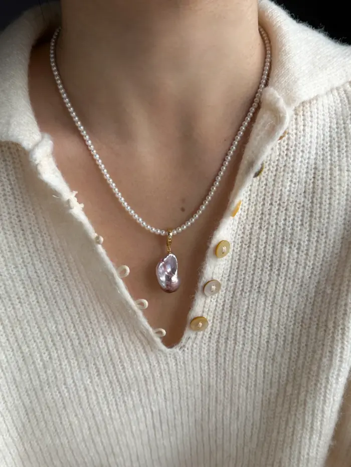 Naszyjnik z perłami baby to subtelność elegancja i klasyczne piękno. Perły o wielkości 3-3.5 mm zachwycają swoją idealnie okrągłą formą, nieskazitelną gładkością oraz najwyższą jakością. Ich delikatny blask sprawia, że naszyjnik doskonale komponuje się zarówno z codziennymi, jak i wieczorowymi stylizacjami. Całość wykończona pozłacanym srebrem dodaje naszyjnikowy dodatkowego szyku. To wyjątkowy dodatek dla kobiet ceniących ponadczasową biżuterię i naturalne piękno.