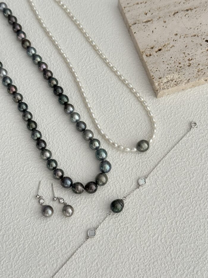 Naszyjnik z perłami słodkowodnymi oraz perłą Tahiti to wyjątkowy dodatek, który emanuje naturalnym pięknem i elegancją. Perła Tahiti, znana również jako „czarna perła”, to wyjątkowa biżuteria o niepowtarzalnym uroku. Jej odcienie, wchodzące w szarość i zieleń, nadają jej tajemniczy i ekskluzywny charakter. Całość złożona z pereł słodkowodnych w połączeniu z perłą słonowodną Tahiti przyciąga uwagę swoim naturalnym pięknem.