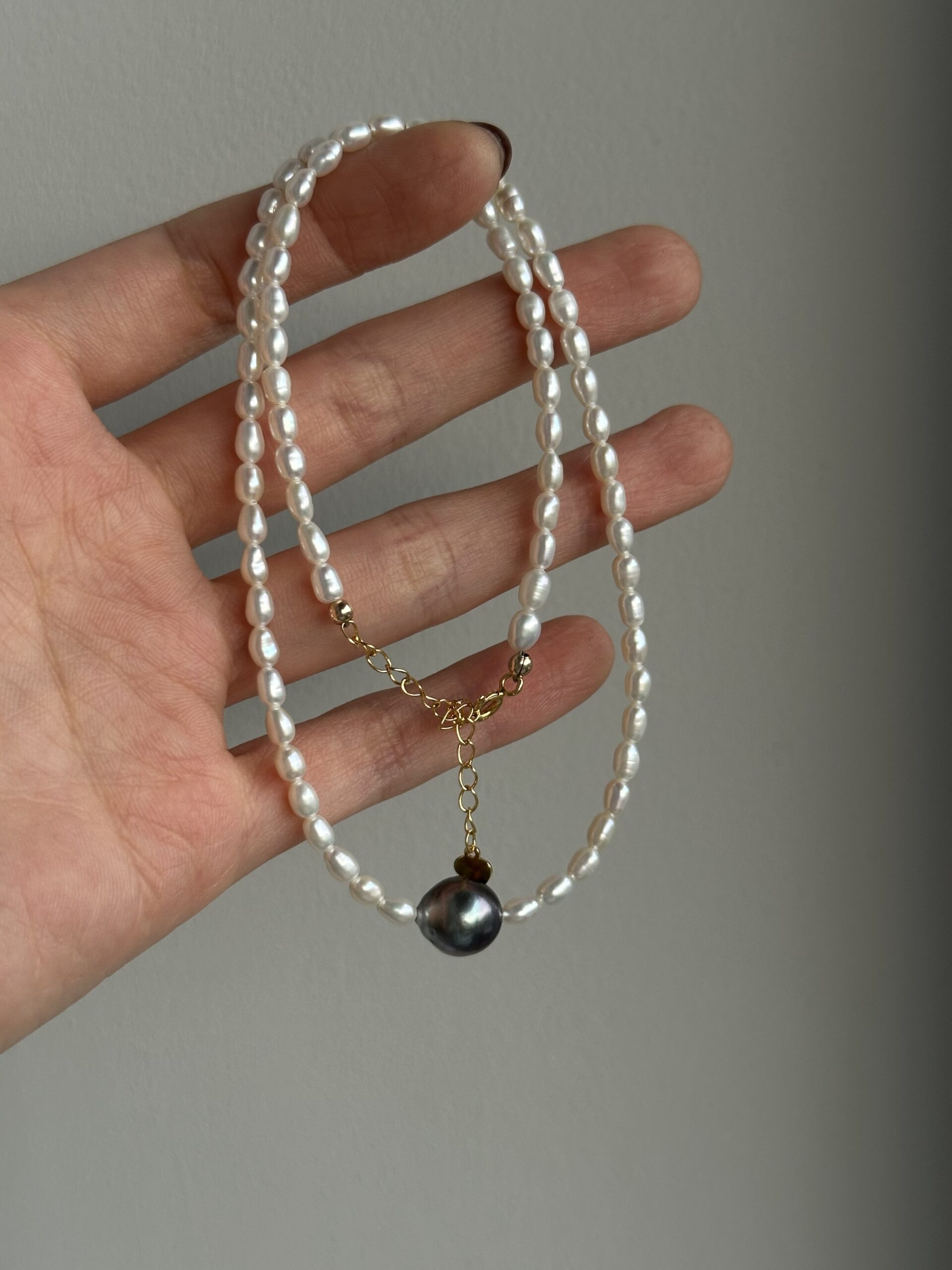 Naszyjnik z perłą Tahiti i perłami słodkowodnymi