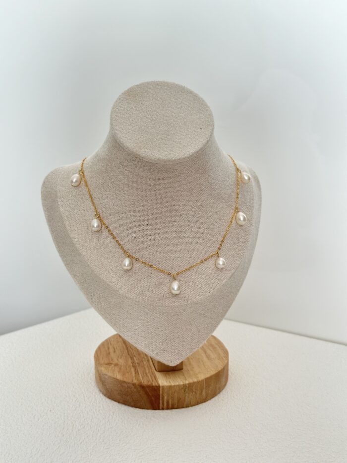 Naszyjnik z siedmioma perłami na złoconym łańcuszku to subtelny, ale wyrazisty dodatek, który sprawdzi się na każdą okazję. Delikatne, białe perły mają naturalny blask, który pięknie odbija światło i dodaje elegancji. Równo rozmieszczone na cienkim, złoconym łańcuszku tworzą klasyczną, ale nowoczesną całość.