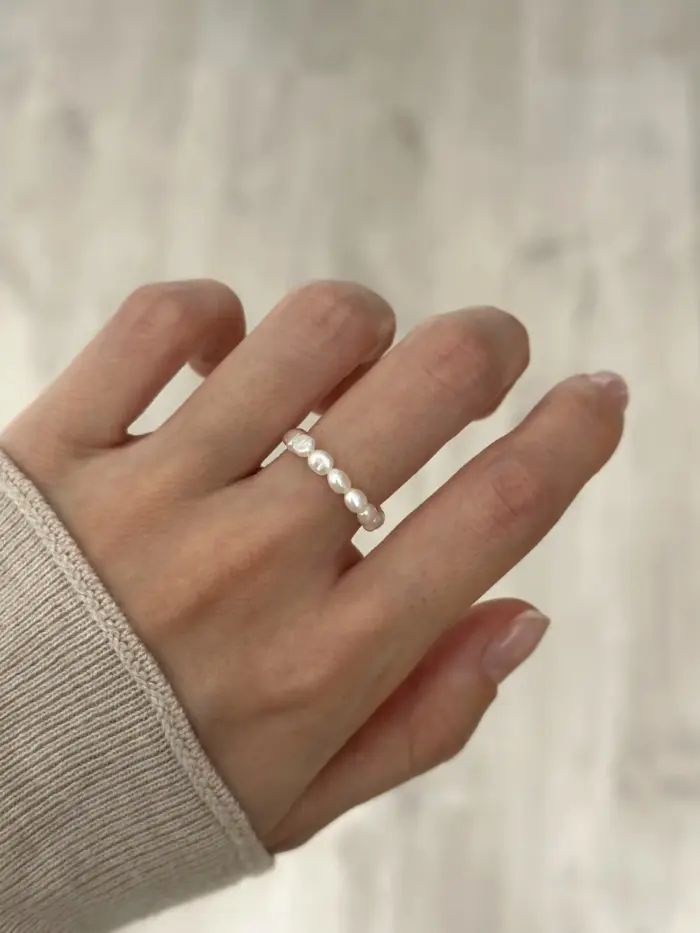 Delikatny pierścionek z naturalnych mini perełek o nieregularnych kształtach, uzupełniony centralnie umieszczoną złotą kulką wykonaną w technologii gold-filled 14K, to idealne połączenie subtelności i nowoczesnej elegancji. Każda perełka ma nieco inny kształt, co podkreśla ręczne wykonanie i organiczny charakter biżuterii. Regulowany rozmiar sprawia, że pierścionek dopasowuje się do każdego palca, zapewniając komfort noszenia i uniwersalność.