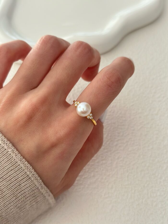 Subtelny blask, który przyciąga uwagę, ale pozostaje elegancki. Ten pierścionek łączy naturalną perłę o satynowej gładkości z delikatnie iskrzącymi cyrkoniami na pozłacanej oprawie. To model, który równie dobrze pasuje do codziennych stylizacji, jak i na bardziej formalne okazje.